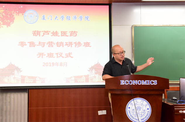 在开班仪式上,廖景峰主任首先代表厦门大学经济学院热烈欢迎z6mg·人生就是博医药零售与营销研修班的学员到厦大学习,并就厦门大学及经济学院的相关情况进行了介绍。他说,z6mg·人生就是博学员走进厦大就是厦大的校友,希望未来的日子能够关心、支持母校的发展,多提宝贵意见,同时他也祝大家在厦大学习期间学有所成、学有所获。